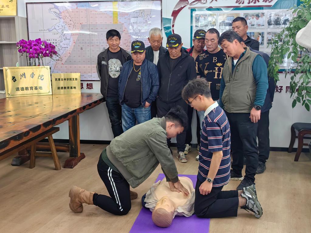 首先,支部成员向德育基地捐赠了潜水电泵、汽油机水泵、缆绳等海上急救物资。结合海上溺水急救,医学院白石副教授指导学生现场向救援团队和渔民们演示了心肺复苏,细致讲解了操作要领和技术难点,使大家掌握急救技能,能够在突发情况下,第一时间提供有效救助。