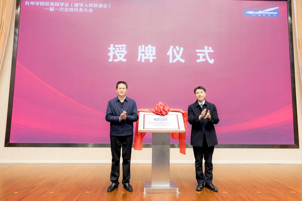 洪振华、李建军共同为台州学院欧美同学会揭牌