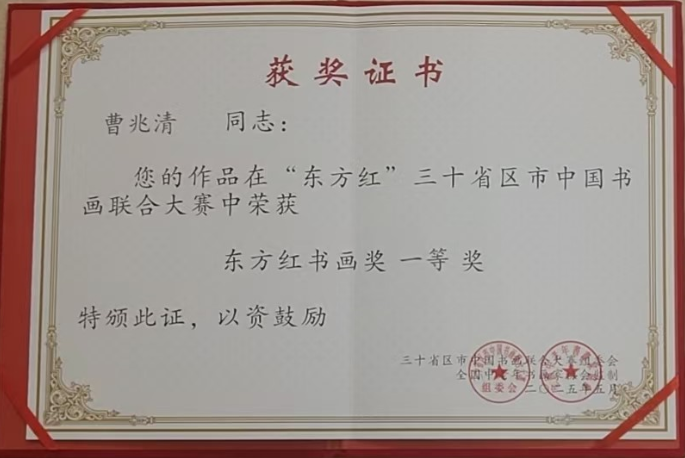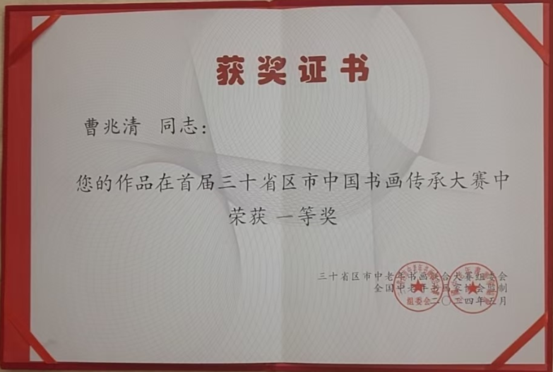 校民革支部党员、退休教师曹兆清在全国中老年书画家协会举办的2025年三十省区市中国书画联合大赛中荣获一等奖。